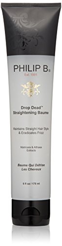 -. Binding : Health and Beauty -. Brand : PHILIP B -. Color : no color -. Department : unisex -. EAN : 6909122262218 -. Feature : For curly, wavy or unmanageable hair / Cuts down blow-dry time / Assists in straightening process / Protects strands from heat damage / Smoothes frizz and detangles -. IsAdultProduct : 0 -. IsAutographed : 0 -. IsMemorabilia : 0 -. Label : Philip B -. LegalDisclaimer : This product can be shipped to any country to which SkinStore currently ships -. Manufacturer : Philip B -. Model : 09178 -. MPN : 9178 -. NumberOfItems : 1 -. PackageQuantity : 1 -. PartNumber : 9178 -. ProductGroup : Prestige Beauty -. ProductTypeName : LUXURY_BEAUTY -. Publisher : Philip B -. ReleaseDate : 2007-10-10 -. Size : 6 Ounce -. Studio : Philip B -. Title : PHILIP B Drop Dead Straightening Baume, 6 fl. oz. -. UPC : 885606949645