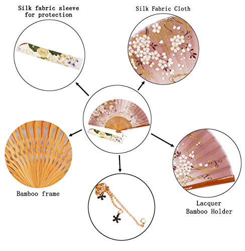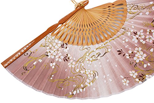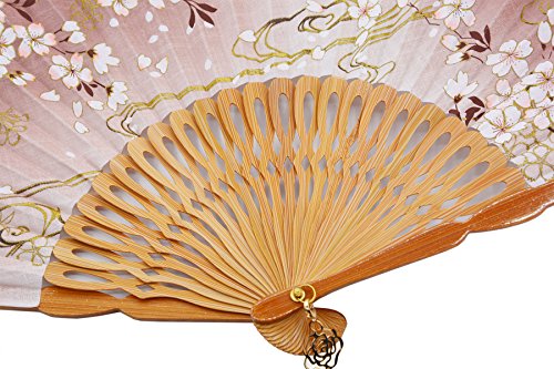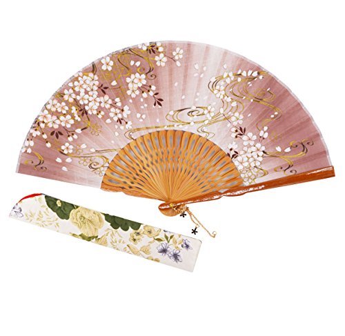 STHUAHE 8.27"(21CM) Sakura Convective Cloud Hand Painting Woman Folding Fans With a Fabric Sleeve for Protection,Hollow Carved Bamboo Frame Gift Fan Wedding Fan Dance Fan Craft Fan (Brown)