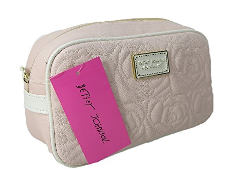 New Betsey Johnson Logo Cosmetics Make Up Bag Travel Case Blush Pink Loaf Roses