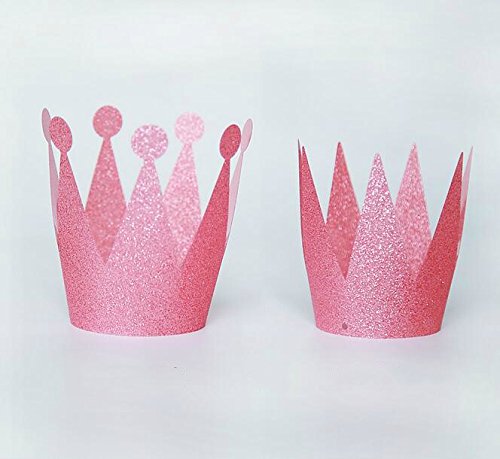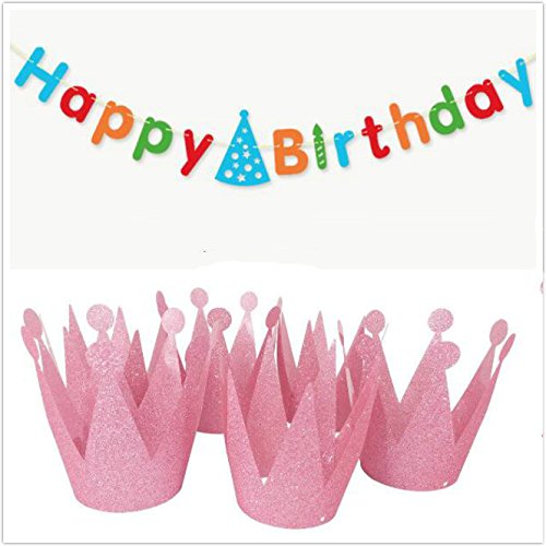 IMagicoo 6 Pcs Shimmering Glitter Birthday Crown Hats + 1 Happy Birthday Banner (pink)