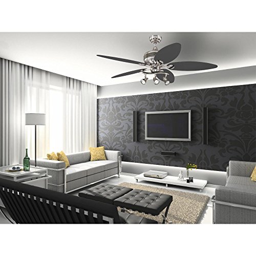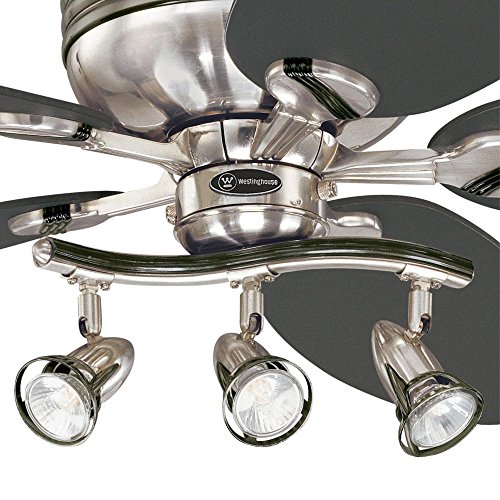 Add a unique and dynamic focal point to any room with the Westinghouse Xavier II Ceiling Fan. The brushed nickel finish with gun metal accents provides a contemporary look, while the graphite and weathered maple reversible blades make it easy to match or change your room's decor. The Xavier II's three spotlights let you direct light where you need it, and its three fan speeds (high/medium/low) and reversible switch help you stay cool in the summer and warm in the winter.