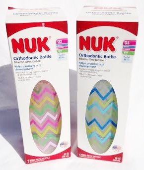 -. Feature : 1 Set of 2 Plastic Bottles - 1 Zig-Zag PINK & 1 Zig-Zag BLUE / Includes 2 NUK Orothodontic Nipples / Wide Neck Bottle / Nipples Have a Superior Design Versus Standard Nipples / NUK Air System & Design Helps Reduce Colic & Prevent Nipple Collapse