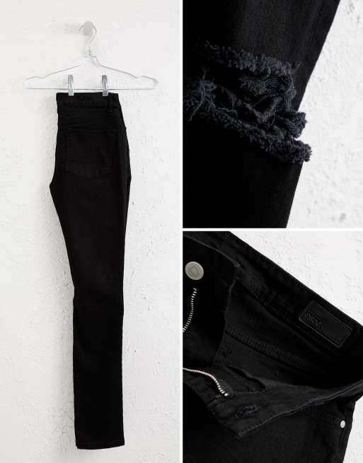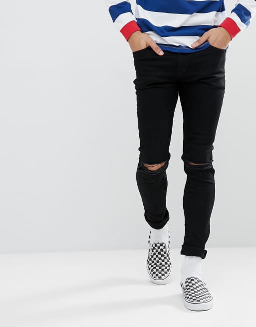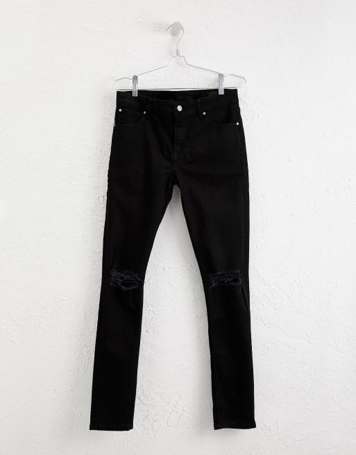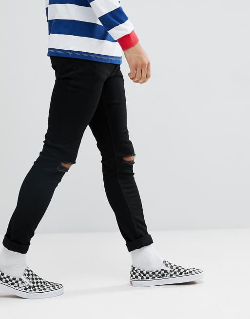 ASOS Super Skinny Jeans In Black With Knee Rips