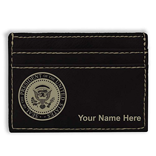 -. Binding : Apparel -. Brand : SkunkWerkz -. ClothingSize : Medium -. Color : Black -. Department : mens -. EAN : 0655222573933 -. Feature : The Money Clip Wallet is laser engraved with the image that you see in the photo. / Your name or personalized message will be engraved on the wallet for free. / Synthetic leather construction. Includes space for 3 credit cards. / You may have one line of engraved text - 20 characters maximum. / Click the "Customize Now" button to begin customizing your wallet. -. ProductGroup : Apparel -. ProductTypeName : ACCESSORY -. Size : Medium -. Title : Money Clip Wallet, Presidential Seal, Personalized Engraving Included (Black) -. UPC : 655222573933