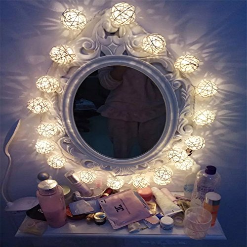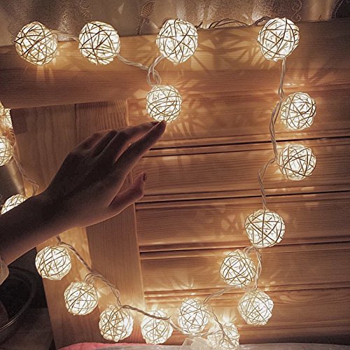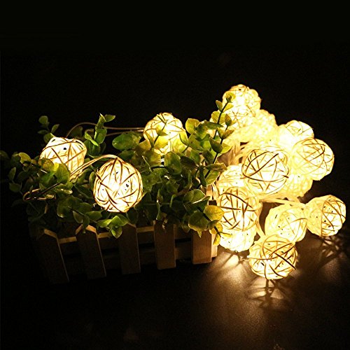 COTW Cream White Handmade Rattan Ball String Lights 20 Leds Battery Operated Warm White Indoor Decoration Wedding Fairy Lights Led Decorative String Lights For Garden Kitchen Bedroom