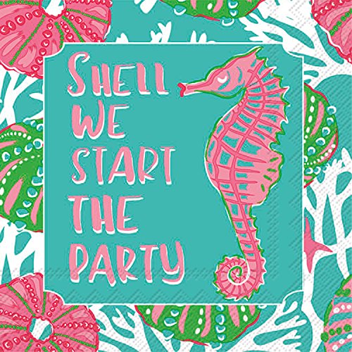 Ideal Home Range C014400 20 Count Shell Simply Southern Paper Cocktail Napkins, Multicolor