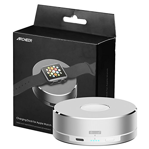 -. Binding : Wireless Phone Accessory -. Brand : Archeer -. EAN : 6776543013053 -. Feature : Wrap up your Apple Watch Magnetic Charging Cable (NOT Included) to its internal winder to turn it into an Apple Watch charging dock/Cradle (for both 38mm & 42mm Apple Watch) / Built-in 1500 mAh Li-ion battery pack, fully charge (0%-100%) Apple Watch 3 times! Connect the dock to a Lightning cable (Not Included) to juice up the battery pack and your Apple Watch / Crafted for maximum efficiency and safety, multiple safeguards protection against overcurrent, overheat, short circuit; the whole charging process is totally safe and efficient / Lightning to USB Cable & Apple Watch Case & Watch & Apple Watch Magnetic Charging Cable are NOT INCLUDED / What You Get: 1* Archeer Apple Watch Charger/Cradle, 1*User Manual, Archeer's 40 days money back guarantee and 18 months hassle free warranty with considerate customer service -. Label : Archeer -. Manufacturer : Archeer -. PackageQuantity : 1 -. ProductGroup : Network Media Player -. ProductTypeName : ACCESSORY_OR_PART_OR_SUPPLY -. Publisher : Archeer -. Studio : Archeer -. Title : Apple Watch Portable Charger, Archeer 1500mAh External Battery Charger Portable Power Bank for Apple Watch Accessories -. Warranty : Archeer warranty for 40 days money back and 18 months warranty from date of purchase.