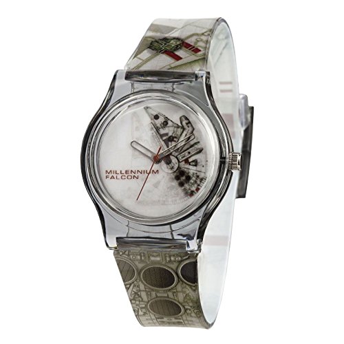 -. Binding : Watch -. Brand : Star Wars -. Color : White -. Department : boys -. EAN : 5013348006844 -. Feature : Star wars millennium falcon analogue watch / Millennium falcon printed dial / Iconic grey and black coloured strap / Easy to fasten buckle! / Perfect gift for any star wars fan! -. Label : Star Wars -. Manufacturer : Star Wars -. Model : STAR370 -. MPN : STAR370 -. NumberOfItems : 1 -. PackageQuantity : 1 -. PartNumber : STAR370 -. ProductGroup : Watch -. ProductTypeName : WATCH -. Publisher : Star Wars -. Studio : Star Wars -. Title : Star Wars Boy's Quartz Analogue Display Watch With White Dial And Grey Plastic