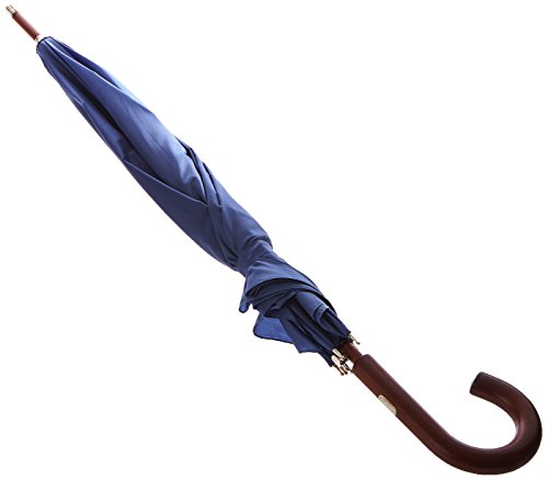 -. Title : Totes Blue Line Auto Wooden Stick Umbrella