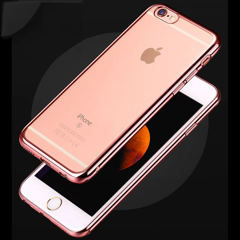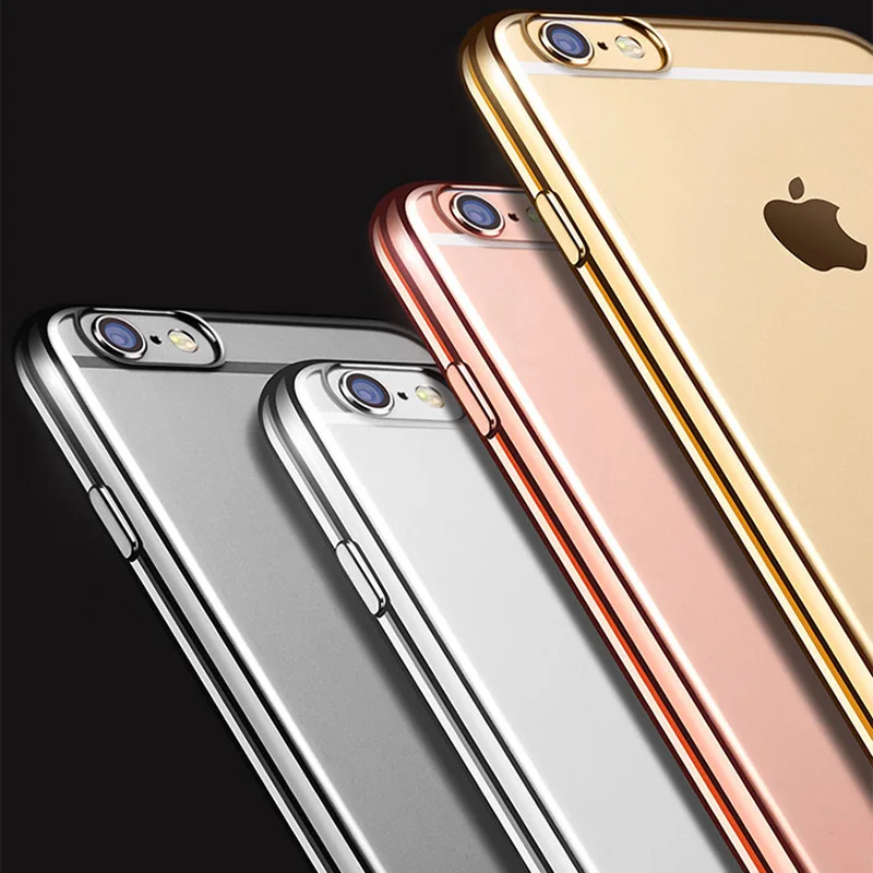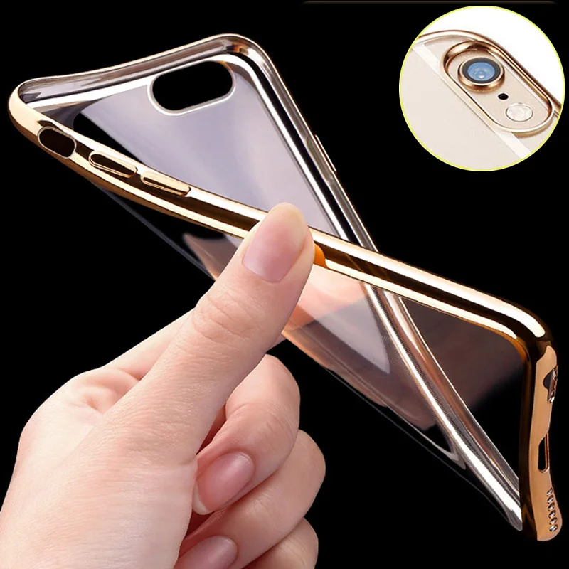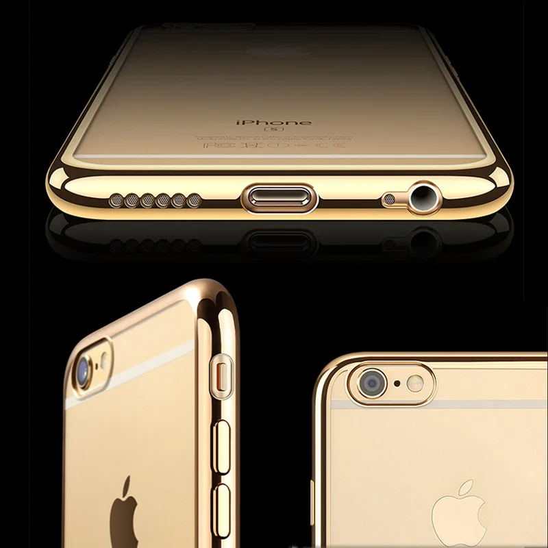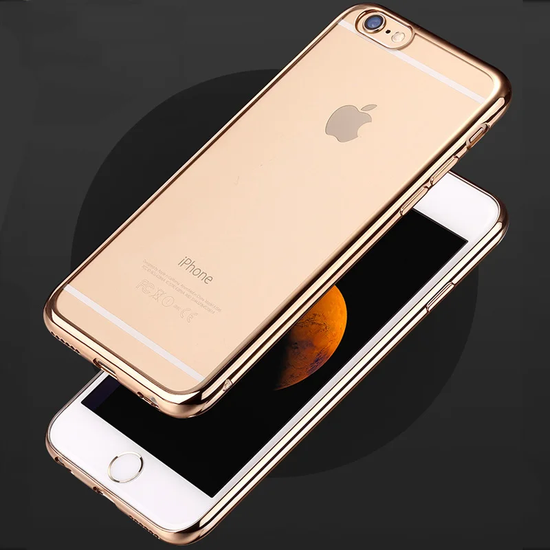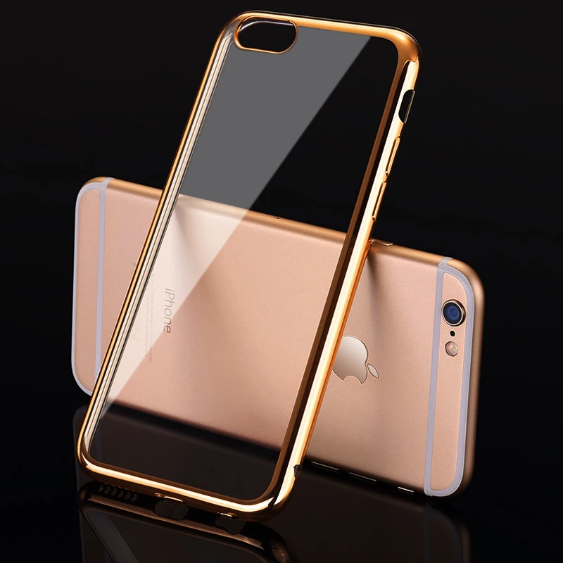 Feature:Gold Plated Edge Clear Plastic Back Cover For iPhone 6 6S 4.7 Inch