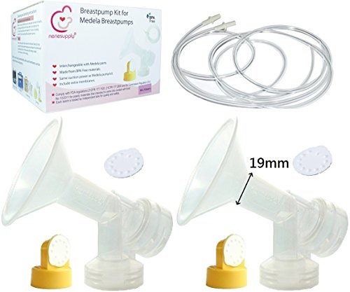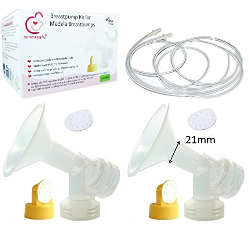 This product is designed to use with Medela Pump-In-Style Advanced breastpump, released after July 2006. It contains 2 breastshields, 2 valves, 4 membranes, and 2 pump-in-style tubing. The tubing has adapter on one end and soft on the other. The breastshield is designed in one-piece, and thus, have better suction than 2-piece ones. In addition, we give you extra membranes so you can have replacement when existing ones break. NeneSupply breastshield can be connected with Medela storage bottles, and is 100% compatible with Medela valve and membrane. You may attach your own Medela valve onto NeneSupply breastshields, or you can also purchase spare NeneSupply duckbill valve on Amazon. For best protection and hygiene, all items are packaged in corrugated carton, sealed by manufacturer.Feature