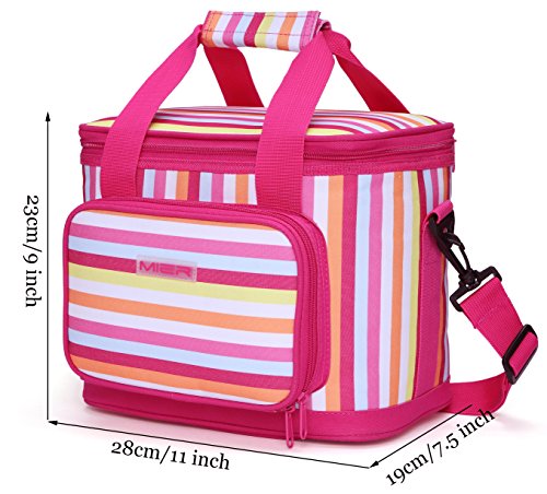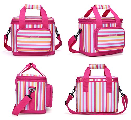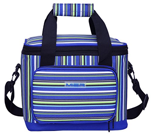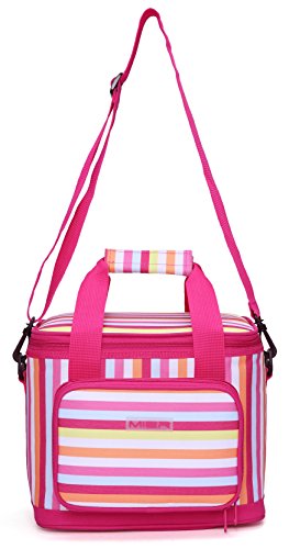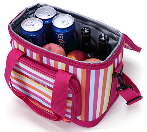 MIER cooler bag really appealing style let you joviality,which is made of high quality polyester fabric,food safe and leakproof PEVA lining,thick insulation ensures contents stay cool and fresh.Designed with stripes and pocket detailing,simple and functional.Ideal as a day pack or for a working lunch.