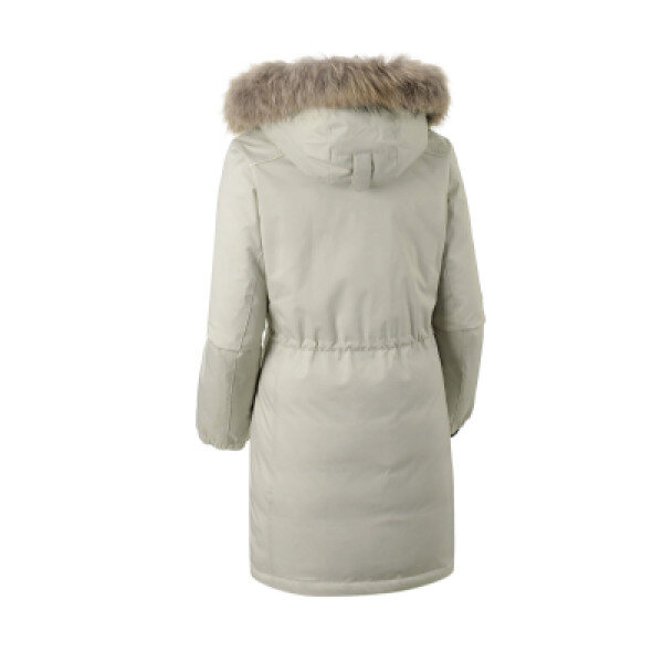 하프기장의 헤비 야상 다운 자켓으로 아웃포켓을 사용하여 수납성을 높이고 코듀로이 핑 마감 처리로 여성스러운 디테일을 가미한 제품.