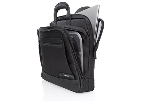 -. Binding : Personal Computers -. Brand : Targus -. Color : Black -. EAN : 0777785547654 -. Feature : SafePort Sling laptop protection system suspends your laptop, avoiding contact between the device and the case's base during drops / Mobile phone pocket with window; removable accessory pouch / Integrated document storage / Tangle-free shoulder strap; lage strap; molded non-slip handles / Fits 13" and many 14" devices / Intelligently organized accessory storage enhances your efficiency with easy-to-locate key fob and individual pockets for USB flash drive, SD card, business cards and pens. / Carry it all in comfort with ergonomic, molded non-slip top handles, a tangle-free shoulder strap and a handy lage strap. / Compatible with up to 13-Inch laptops and ultrabooks. -. Format : CD-ROM -. IsAutographed : 0 -. IsMemorabilia : 0 -. Label : Targus -. Manufacturer : Targus -. Model : TTL213US -. MPN : TTL213US -. NumberOfItems : 1 -. OperatingSystem : N/A -. PackageQuantity : 1 -. PartNumber : TTL213US -. ProductGroup : Personal Computer -. ProductTypeName : CARRYING_CASE_OR_BAG -. Publisher : Targus -. Size : 13.3 Inches -. Studio : Targus -. Title : Targus 13-Inch Revolution Ultrathin Topload, Black (TTL213US) -. UPC : 926362718936 -. Warranty : Comes with Manufacturer Warranty.