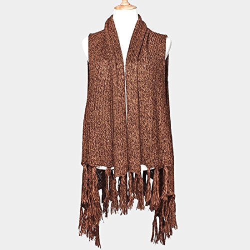 -. Title : Tassel Edge Brown Knit Vest Sweater. Size : 85cm x 135cm. Material : 100% Acrylic.