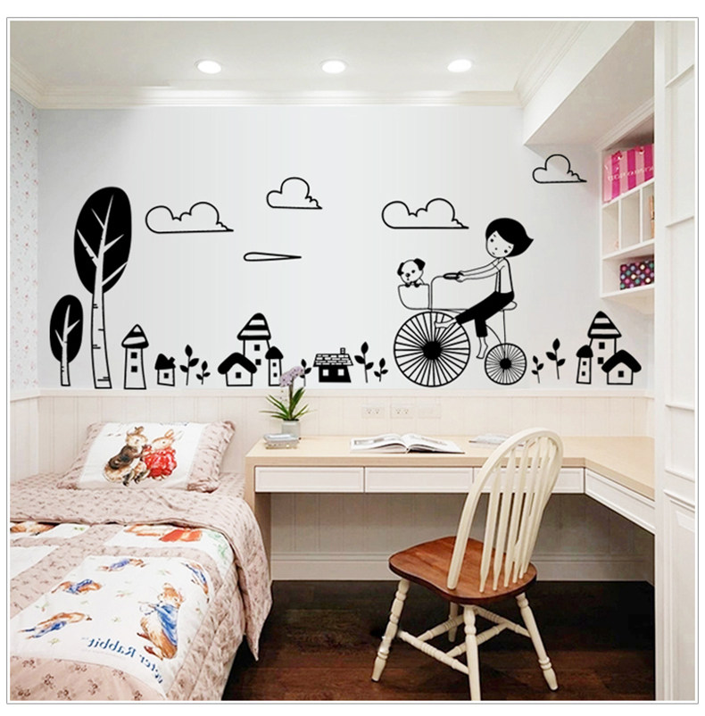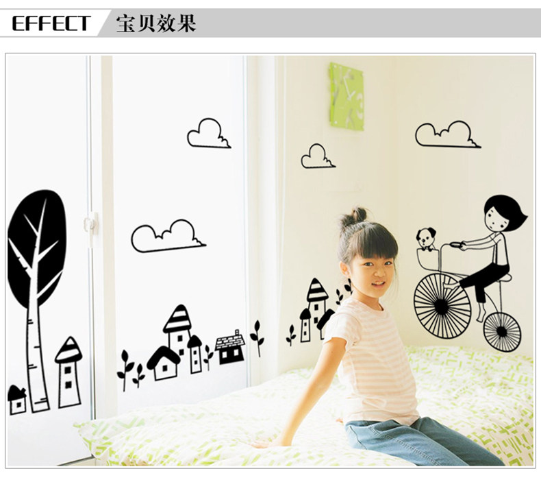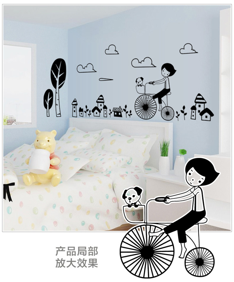 可移除墙贴纸贴画骑自行车女孩儿童房客厅卧室房间背景墙壁装饰
