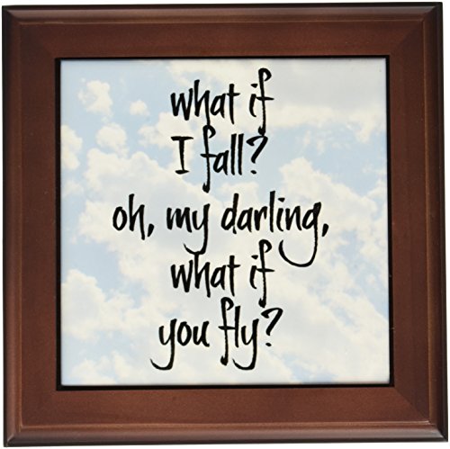 3dRose ft_200712_1 What if I Fall Oh My Darling What if You Fly Black Letters on Sky Pic Framed Tile, 8 by 8-Inch