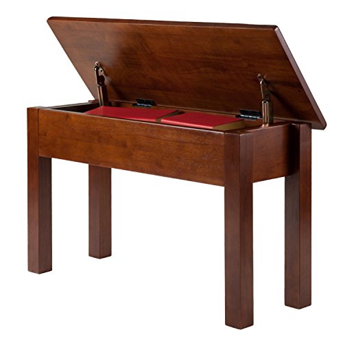 -. Feature : The bench overall assembled size is 30"wide x 12"deep x 17.75"high / Seat lifts up and supports by metal hinges. Under seat storage is 23"w x 8.5"h / Constructed with solid wood in warm walnut finish; assembly required