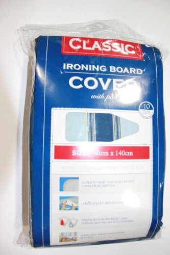 -. Binding : Kitchen -. Brand : J&J home fashion -. Color : Blue With White -. EAN : 6952143800228 -. Feature : Fits 15" x 54" Standard-size ironing board / Ultrafit skit and seam prevent cover from shifting / Stetch & fit binding for a snug fit / Surelock straps keep cover in place / 10 year warranty -. IsAutographed : 0 -. Label : J&J home fashion -. Manufacturer : J&J home fashion -. PackageQuantity : 1 -. ProductGroup : Home -. ProductTypeName : HOME -. Publisher : J&J home fashion -. Size : 13"-15" wide and 53"-54" long -. Studio : J&J home fashion -. Title : Classic Ironing Board Cover with Pad