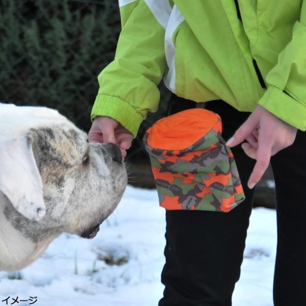 ベルトに通して腰に携帯できる仕様になっているので、いつでもワンちゃんにおやつをあげることができます♪内側は特殊素材を使用していますので、油分等の汚れを防ぎます。 |