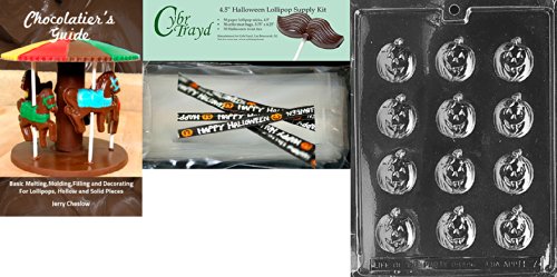 Cybrtrayd "Pumpkin Mints" Chocolate Mold with Chocolatier's Bundle, Includes 50 Cello Bags and 50 Happy Halloween Twist Ties