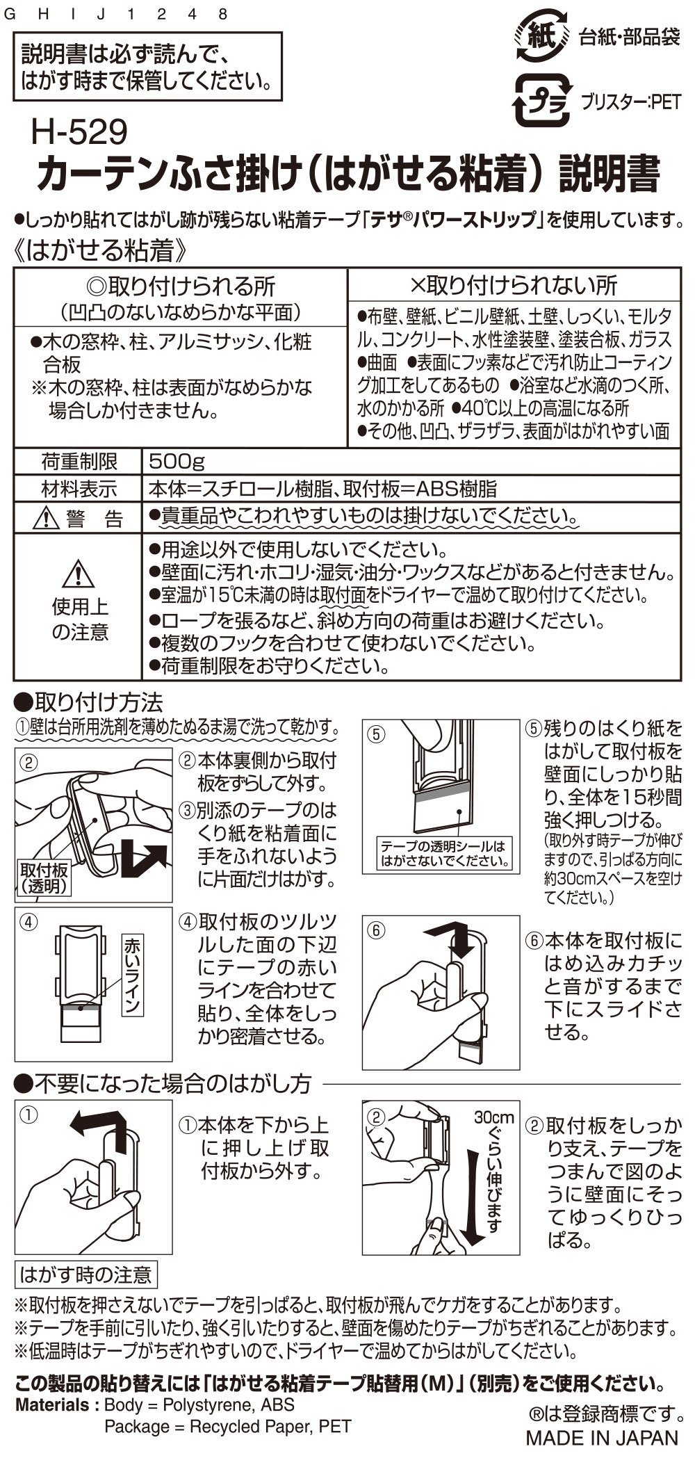● Stick firmly, stretch and peel! Adhesive tape "Tesa Power Strip" adopted that leaves peeling off without leaving any traces of scratches.