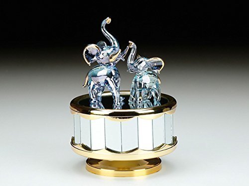 - Mother and child blue tinted elephants with gold accents and trunks up for good luck; stands 6 inches tall; plays "Born Free" delicate tune; elegantly crafted; detailed design; realistic and solid construction; securely packaged for safe delivery; perfect for baby's nursery or the elephant lover in your life