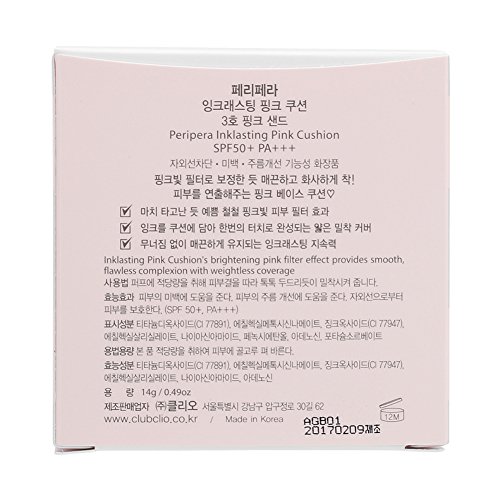 -. Binding : Misc. -. Brand : Peripera -. Feature : Enjoy free shipping on orders over $70.00 / This is Clubclio's direct management shop's Korean head office. / Volume : 0.49 Ounce / Period after opening : 12 months / Ingredients : Contains pink flower complex for bright pink complexion care / Contains peach and sweet tone extract for flawlessly clear skin texture care / Peach : Contains vitamins A and C, promotes blood circulation and inhibits melanin generation / Sweet Tone (Five-flavor Berry ) Reduces redness, improves skin tone and prevents excessive melanin / Pink Flower Complex : Cherry Blossom, Water Lily, Pink Rose, Pink Lotus / Country of Origin : South Korea / The color displayed may vary depending on your screen. -. Label : Peripera -. Manufacturer : Peripera -. MPN : P00000VV -. PartNumber : P00000VV -. ProductGroup : Beauty -. ProductTypeName : BEAUTY -. Publisher : Peripera -. Studio : Peripera -. Title : Peripera Ink Lasting Cushion