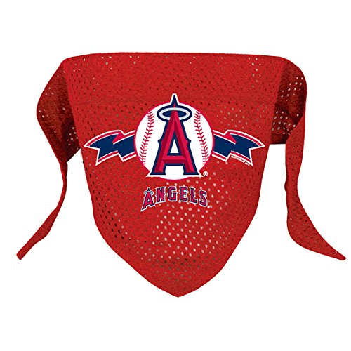 -. Binding : Misc. -. Brand : Hunter -. Color : Team Colors -. Feature : Official team primary logo / Sewn in loop to slide over dog collar / Constructed in micro mesh polyester / Available in Small and Large sizes -. Label : Hunter -. Manufacturer : Hunter -. PackageQuantity : 1 -. ProductGroup : Pet Products -. ProductTypeName : PET_SUPPLIES -. Publisher : Hunter -. Studio : Hunter -. Title : Los Angeles Angels Mesh Dog Bandana