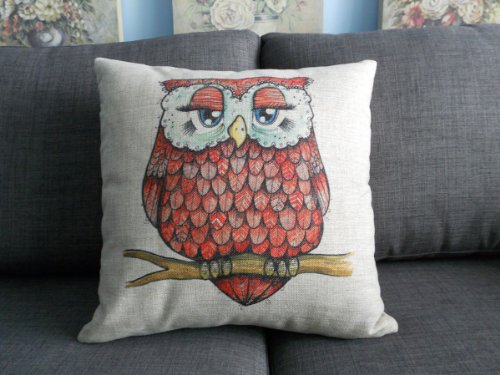 - Title : Decorbox Cotton Linen Square Throw Pillow Case Decorative Cushion Cover Pillowcase for Sofa Cute Cartoon Red Owl 18 "X18 "