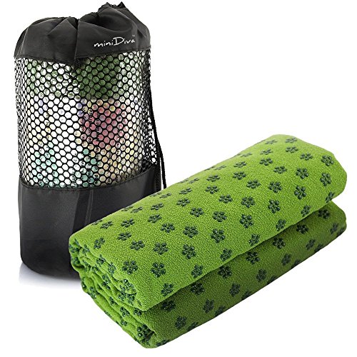 Minidiva 요가 매트 타올 마이크로 화이버 nonskid 흡수 속건미끄럼방지 메쉬 백 부착 사이즈24 x 72 400Gsm―340Gsm마이크로 화이버