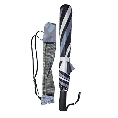 Product Description Taking an umbrella around wherever you go is cumbersome when you have no place to put it. At work, it takes up space around your desk. When you go shopping at the store, it gets in the way of the groceries in your cart. You need to be prepared but without the inconvenience of taking up extra space. Keep dry in wet weather with this convenient 56" Auto Golf Solid Umbrella. The protective polyester fabric offers a whopping 56' of coverage, and the netted poly carrying case makes it easy to take along with your golf clubs, in the car, or store at the office in case of a bad forecast. The umbrella even includes a carrying case to make traveling and storage much easier. Make sure you get the right umbrella for your needs and grab one of these umbrellas right away. 0
