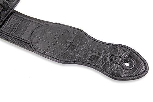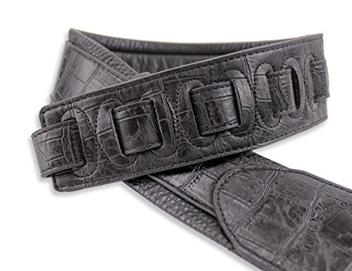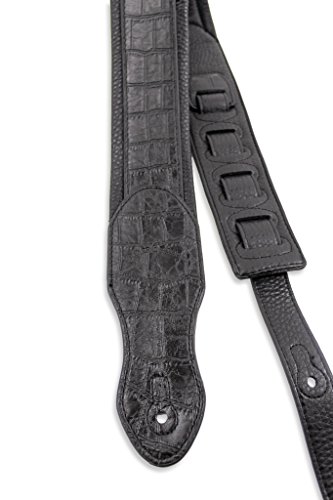 -. Feature : Premium Quality Handmade Black on Black Croc Guitar or Bass Strap / Classic Black Gator Texture Top Welt / Ultra Comfortable Padded Black Glovesoft Back / Double Reinforced End Caps / 2 3/4" Wide and Adjustable From 47"-52"