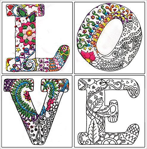 Design Works Zenbroidery Stamped Embroidery Kit 12" x 12" ~ LOVE #4038