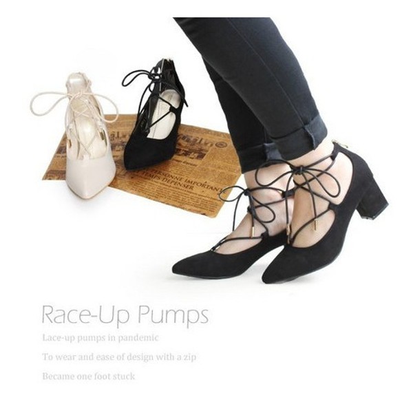 お洒落なパンプスとして定番のレースアップパンプス☆