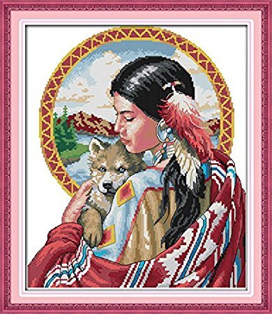 Stamped Cross Stitch Kits Indian Girl 11 Count 46cmx46cm DIY Needle Work for Home Decor