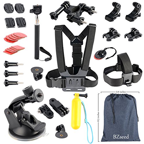 BZseed Accessories Kit for Hero 4 Hero 3 Accessories Kit Bundle, Also for HERO 3+/2/1 SJ4000 SJ5000 SJ6000/ Blue denim bag is more refined for Xiaomi Yi/WiMiUS/Lightdow/DBPOWER (30 Pcs)