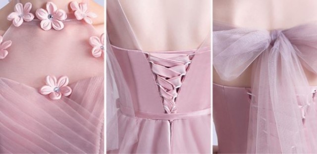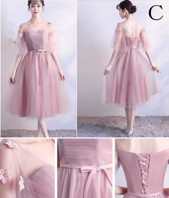 レース・お花使いが可愛らしいパーティードレスです。