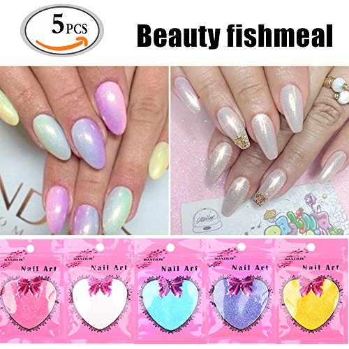 Title : Travelmall 5 pcs Sets Shinning Mirror Nail Glitter Powder Magic Neon color Mermaid Nail Art Decoration (5 color)