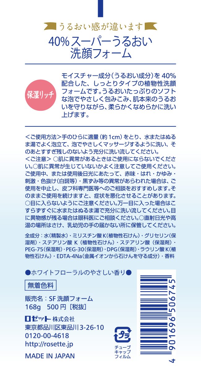 ROSETTE | Facial Washing Foam | SUPER URUOI 168g (Japanese Import)