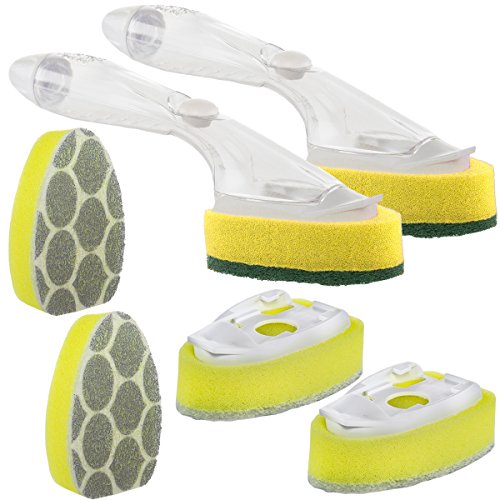 - (2) Heavy Duty Dishwands by Scotch-Brite, (4) Sponge Heads Refills by Ocelo (2 Packs of 2), New In Retail Packaging