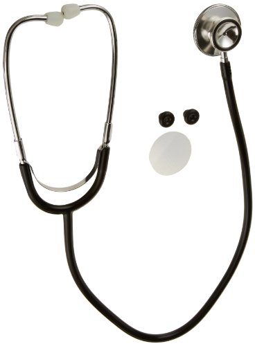 -. Feature : Economical, adult-size stethoscope for monitoring blood pressure and listening to heart, lung, and bowel sounds / Dual-head chest piece with the bell on one side and the diaphragm on the other / Headset is adjustable and is made of chrome-plated brass / Tubing is 22" long, single-channel, and latex free / Includes a spare diaphragm and pair of mushroom ear tips
