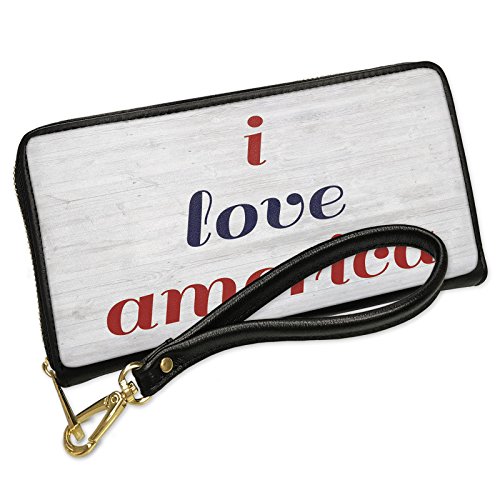 (NEONBLOND)/Accessories/Wallets, Money Key Organizers/DIRECT FROM USA/Wallet Clutch I Love America Fourth of July Modern Rustic with Removable Wristlet Strap Neonblond