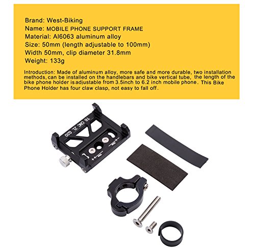 Bicycle Phone Holders, West Biking Bike Mount for Mountain Road Handlebar Accessories Fits IOS iPhone 7 Plus 6s Android Samsung Galaxy S7 S6 S5 Smartphone