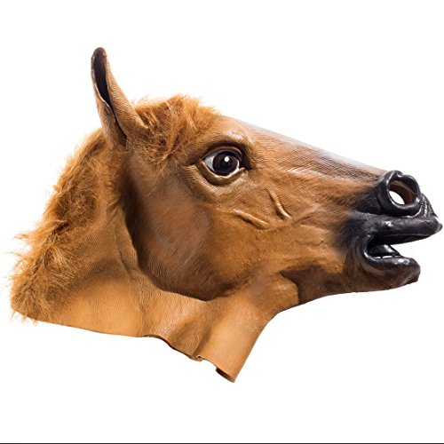 -. Feature : Name: Gmasking Natural Latex Brown Horse Mask / Manufacturer Model: GM014 / Material: 100% Natural Latex from Malaysia / Size: Fits most adult heads / How do you see? Through the Brown Horse Mask's the mouth holes or nose holes