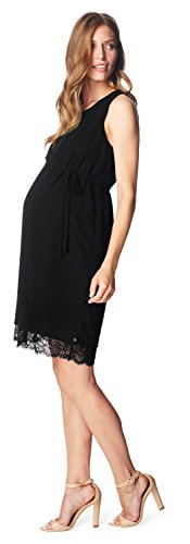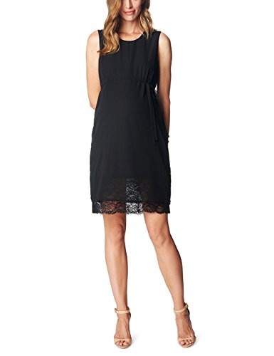 Elegantes Umstandskleid von Esprit for Mums aus glanzendem Material mit edler Spitze am Saum, hohem Rundhalsausschnitt und Reissverschluss am Rucken.