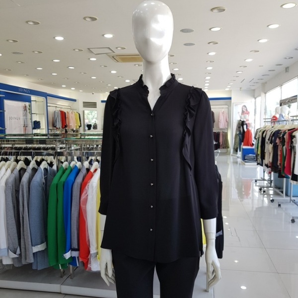 프릴 디테일의 패미닌 셔츠 블라우스 -JA7F8-WRB150-블랙