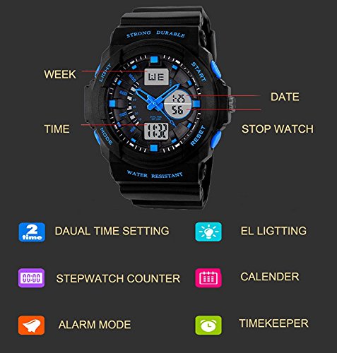 -. Title : Boys Girls Kids Children Digital Sports Watches - Multifunction 50M Waterproof LED Light Electronic Sport Watch for Junior Children Teenagers Boys Girls with Alarm Stopwatch Timer(Blue)