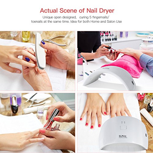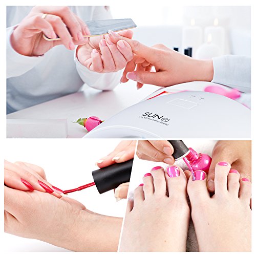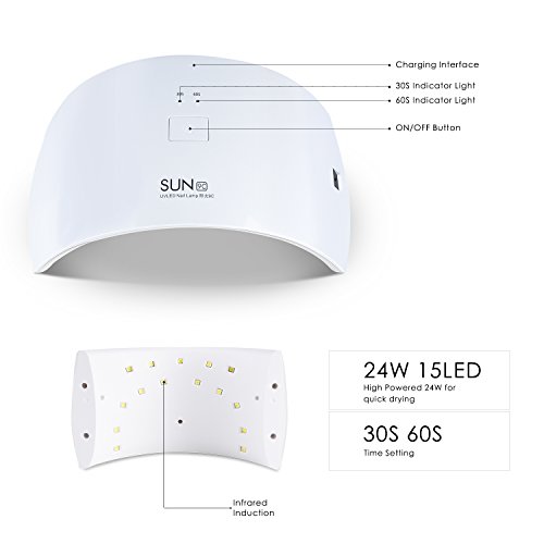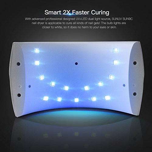 Studio : ACELIST Publisher : ACELIST Binding : Misc. Product Description A NEW SHAPE IN NAIL LAMP This lamp is arch shape,open light weight designed,can cure 5 fingernails or toenails simultaneously. IDEAL FOR ALL NAIL GEL POLISH This lamp cures all kinds of nail gel polish: LED gel, UV gel, Builder gel, Sculpture gel etc..No brand requirements though. PROTECT EYES AND SKIN Closer white light protects your hands and eyes, avoiding harm from outdated nail dryer. EASY TO USE 2 Timer Settings: 30s, 60s.Automatic sencor: hand in, lights on; hand out, lights off. FAST CURING 2X faster curing than traditional nail dryers, save more time. HOW TO USE OUR SUN9C NAIL LAMP 1. Apply a thin layer of the Gel Polishes according to its usage instructions to the clean, dry nail without touching the cuticle or skin alongside the nails. 2. Use the appropriate timer(30s/60s) as per your gel polish's requirements. The lamp will automatically shut off after the specified time. Or use the auto-sensor, it would turn on or off automatically when you put hand/foot in or out. 3. Please note that curing time vary based on gel polish brand. SUNUV SUN9C is for all kinds of gel polishes only, not for regular nail polish. Ensure that your polish is compatible before purchase. For the best results, avoid moving your hand too much until curing is completed. 4. If gel polish is a little sticky after curing, please wipe your nails with a gentle cleanser or rubbing alcohol to get rid of the sticky residue left behind. Enjoy your beautiful manicure or pedicure with SUNUV nail dryer!