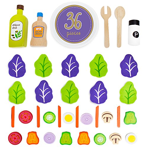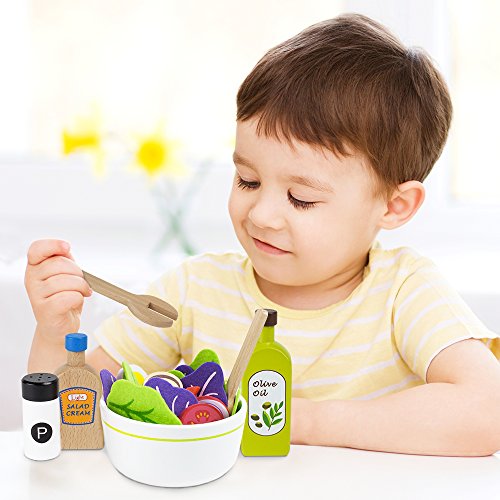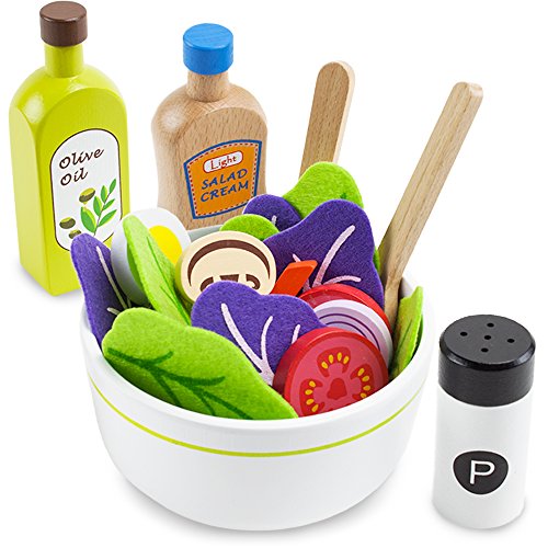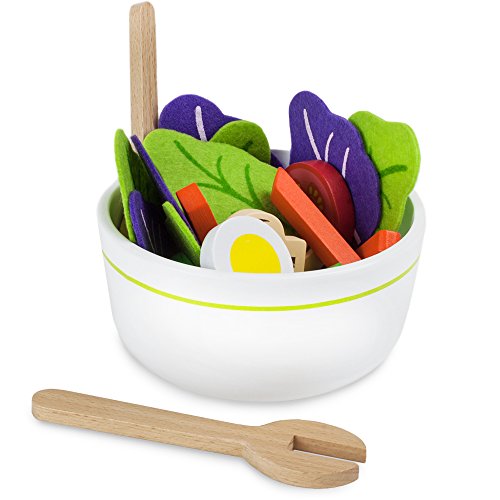 Role-play with wooden food is a great way to supercharge fine motor skills and social skills like following directions sharing, but what's even better is that starting with salads cultivates a lifetime of healthy eating choices.